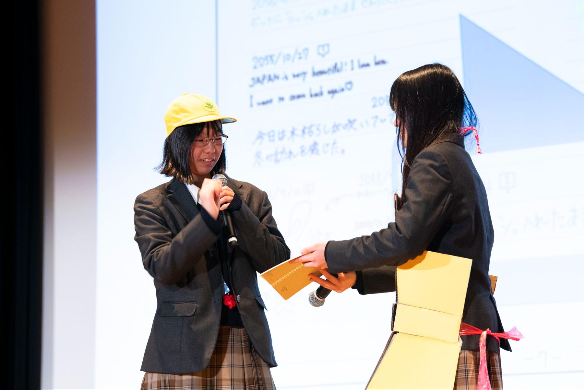 グランプリに輝いたのは、京都市立西京高等学校附属中学校の「ちーむはなまる」。大和ハウス工業が掲げた「『生きる歓び』が溢れる未来の景色を提案せよ!」に対し、「100人の旅人」と題した企画を発表した。着目したのは「暇つぶし」の再発明である。「百トラ」と名付けた移動式交換日記を駅や空港に設置し、見知らぬ人同士が手書きの言葉でつながる仕組みを描いた。既読もいいねもないアナログな設計で、SNS疲れの時代に心地よい距離感を保てる。タイパ重視の風潮にあえて「暇」の価値を見出す大胆さと、大和ハウスのまちづくり理念「共創共生」との重なりが高く評価された。