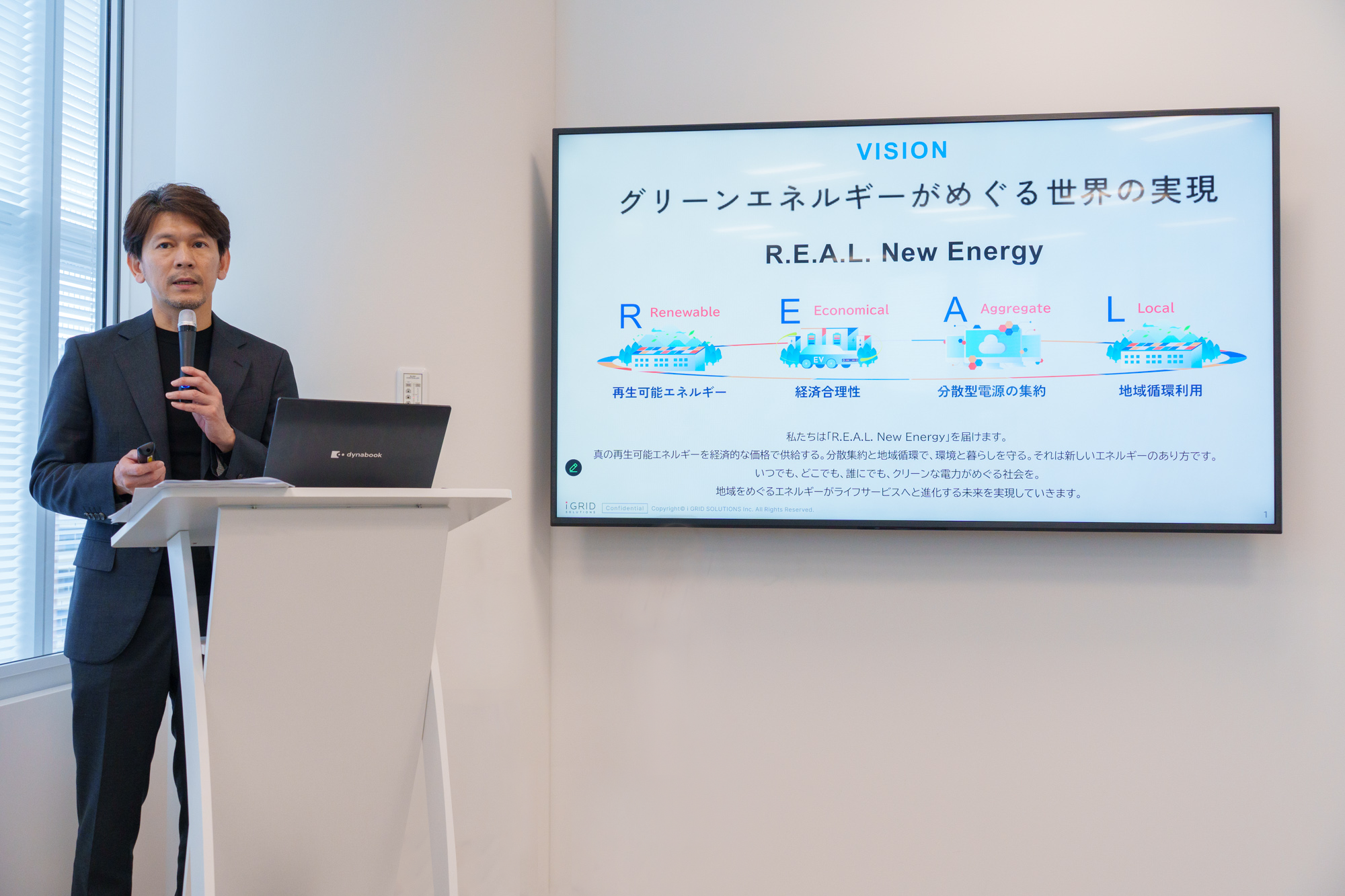 鍵になるのは、余剰電力という考え方だ。太陽光パネルを施設の自家消費分に合わせて設置するのではなく、屋根の全面積に置く。すると、施設内で使い切れない電力が生まれる。秋田社長は発表会で「新たな土地造成を一切必要とせず、屋根を有効に活用するだけで大きなポテンシャルが生まれる」と説明した。同社がすでに全国46都府県に開発した約1,300か所の屋根上太陽光発電所では、76MW分の余剰電力が生まれているという。