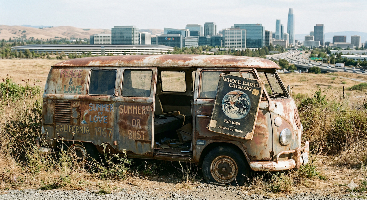 1995年、メディア学者のリチャード・バルブルックとアンディ・キャメロンは、当時のシリコンバレーを支配していた思想を「カリフォルニアン・イデオロギー」と名付け、痛烈に批判した。このイデオロギーは、1960年代のサンフランシスコのヒッピー・ムーブメント(反体制、DIY精神、コミュニティメディア集団)と、1980年代のニューライト的な新自由主義(自由市場経済、国家介入の排除、極端な個人主義)という、本来相反するはずの二つの思想が奇妙に融合して生まれたものだった。